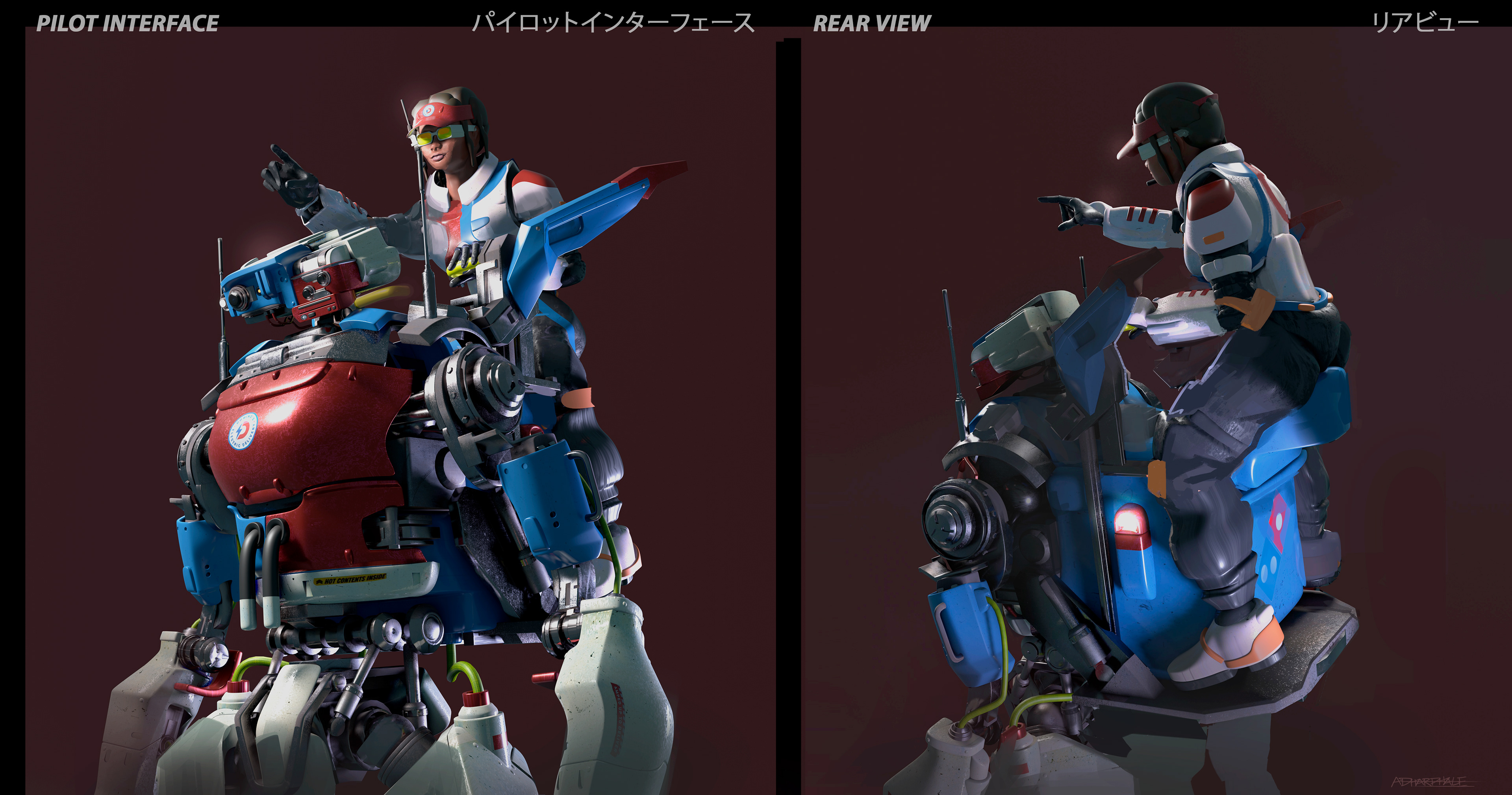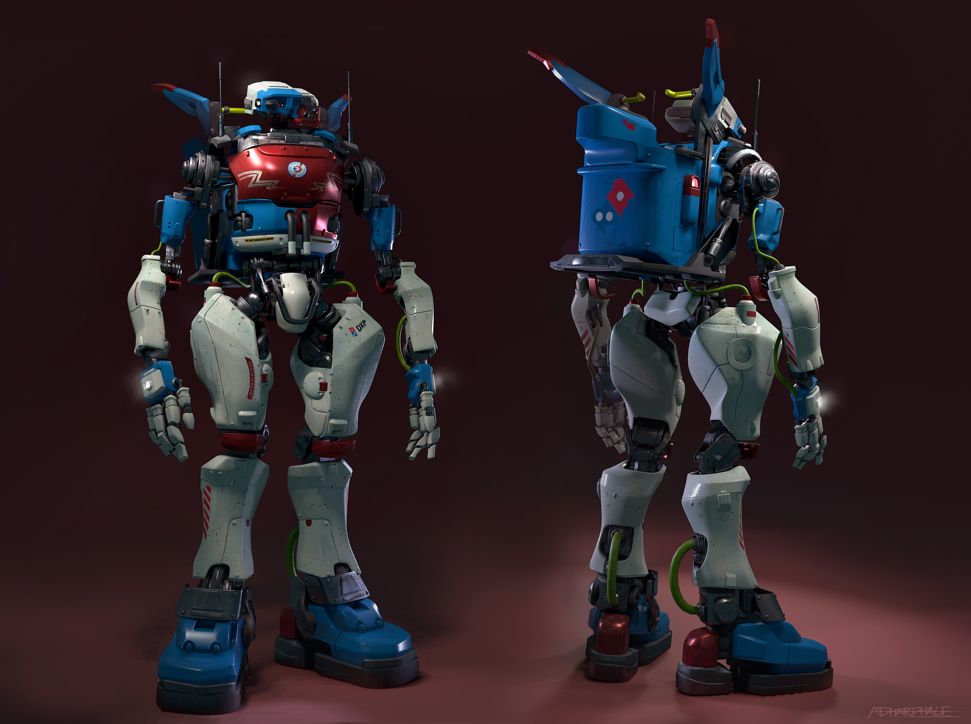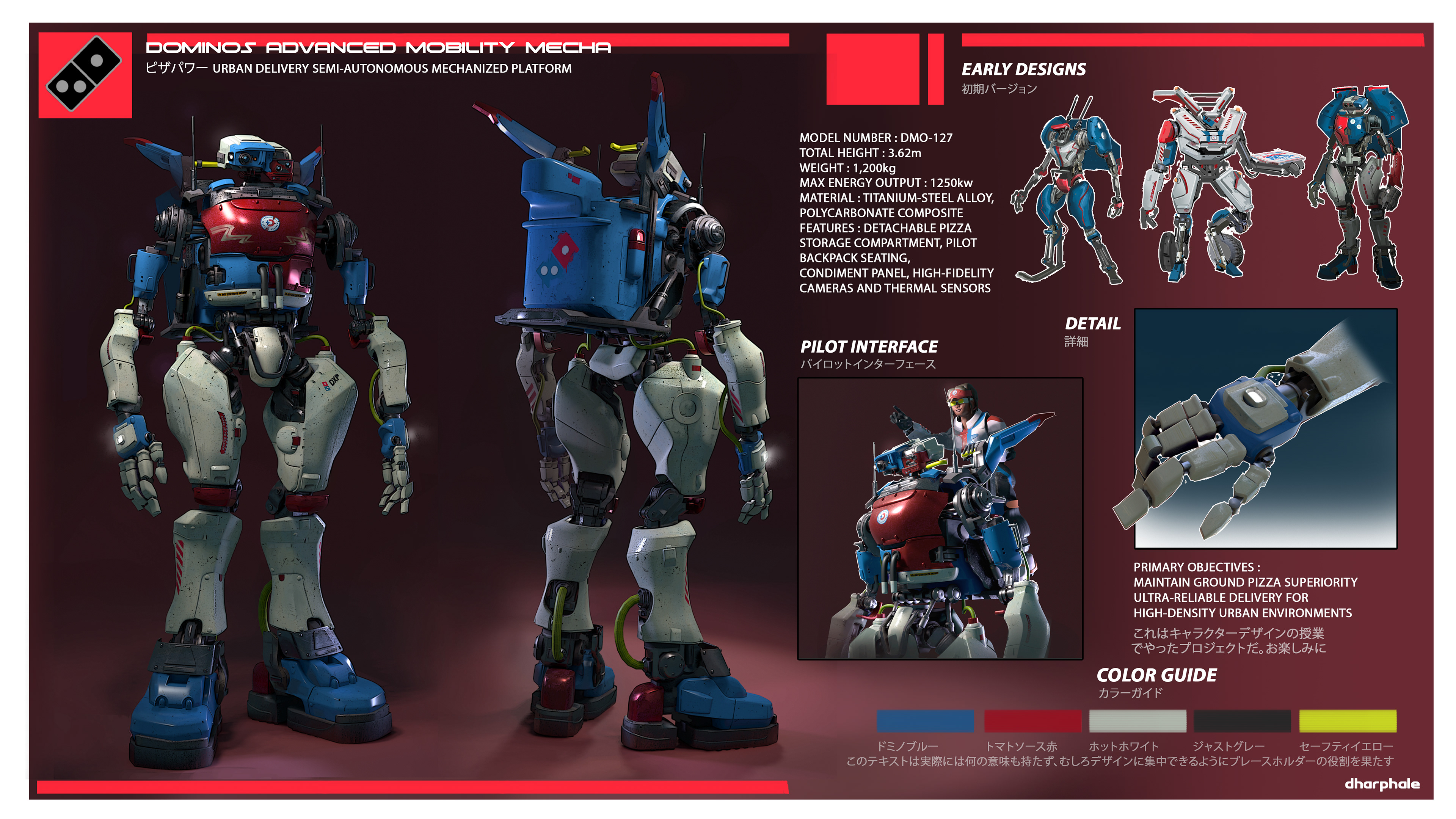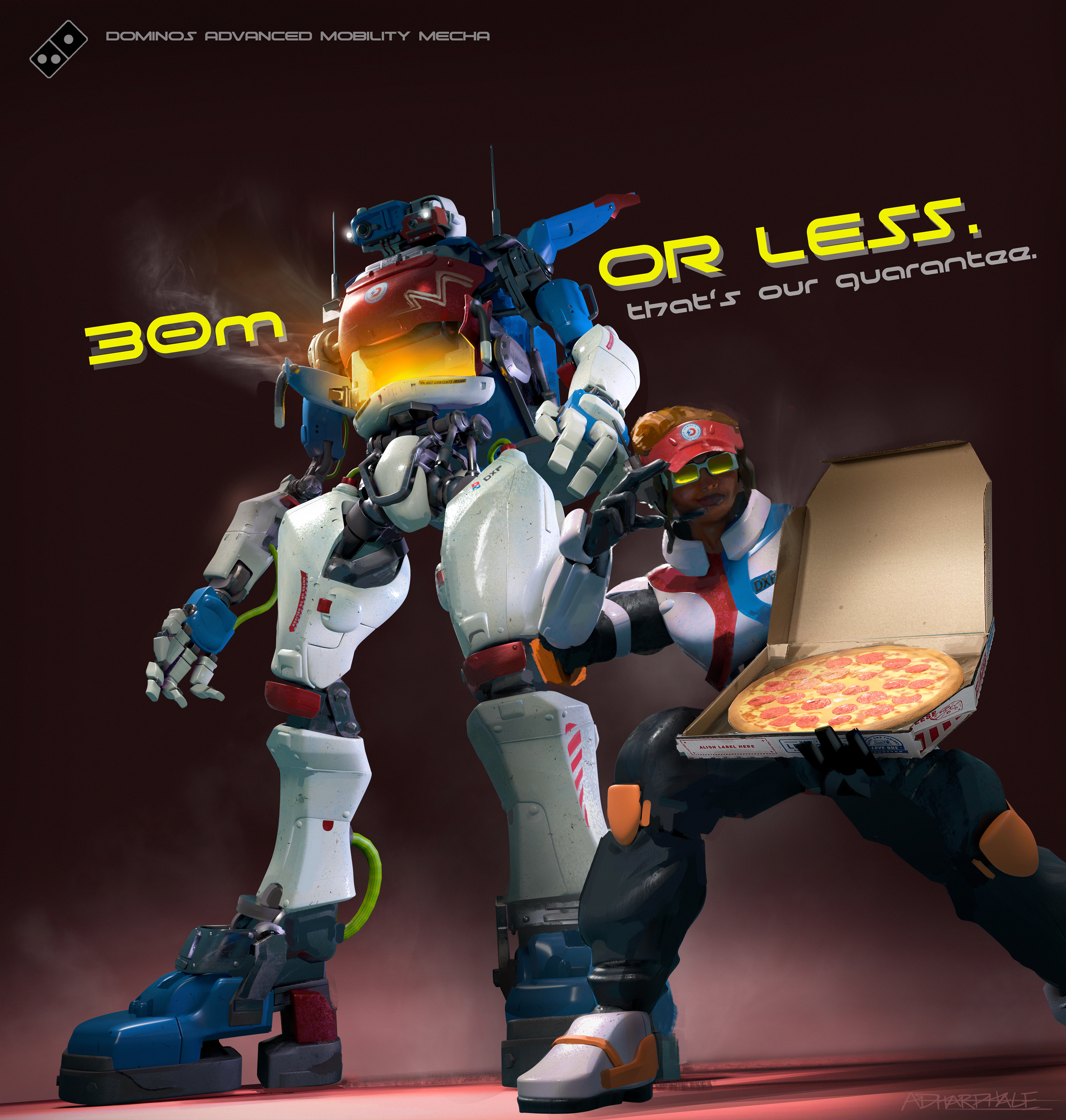 hard surface project inspired by Dominos branded delivery vehicles and gundam packaging/design.